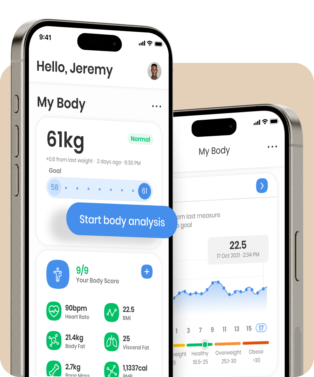We use bioelectrical Impedance Analysis (BIA) technology in our smart scales to measure your body composition. It analyzes the resistance of electrical flow through the body's tissues.